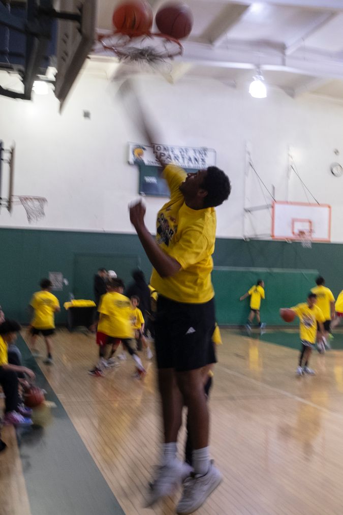 Para Andre Elvez Smith, que mide 6 pies con 7 pulgadas, siempre está tratando de mejorar las habilidades como postes y disparos de gancho. El joven dijo que estaba emocionado de ver y conocer a otros jugadores durante el campamento.