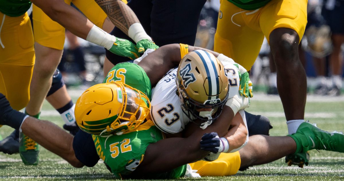 Liniero defensivo de Oregon Washington A’Muring El primer Colegio de Daksa 3-1 contra Montana State Bobcats comenzó el sábado.