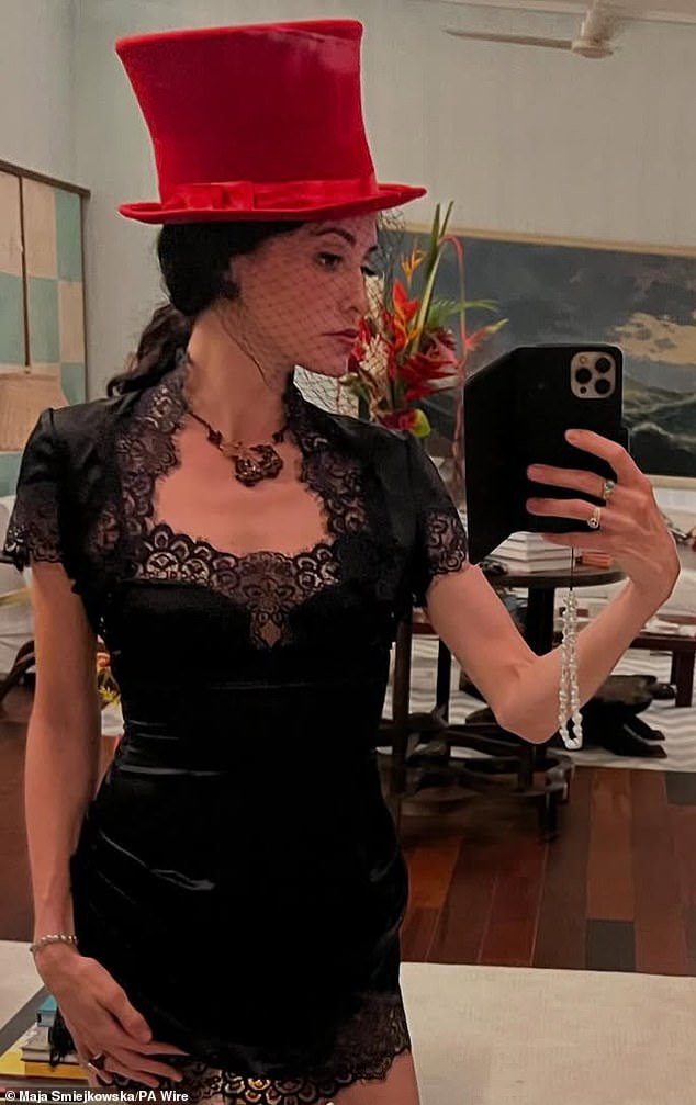 Melanie Hamrick, novia del cantante de los Rolling Stones, lució un sombrero de copa magenta en la víspera de Año Nuevo.