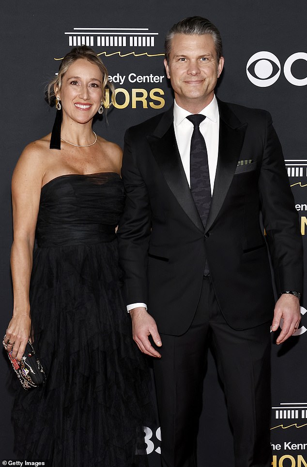 Jennifer Rauchette y el Secretario de Guerra de los Estados Unidos, Pete Hegseth, asisten a la 48ª edición de los Honores del Centro Kennedy en el Centro Kennedy el 7 de diciembre.