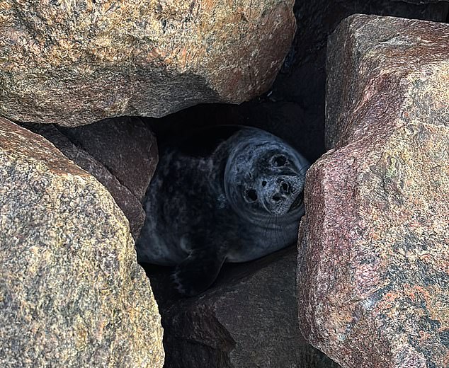 Un portavoz local del BDMLR dijo: ‘A su llegada, la foca fue encontrada fuertemente atada entre grandes rocas, con una armadura profunda y justo al alcance.