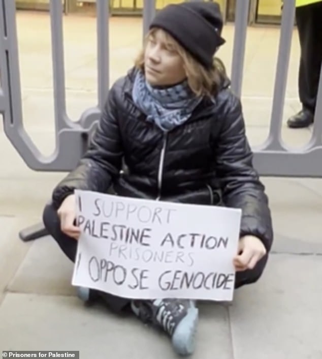 Las imágenes muestran al activista climático de 22 años sosteniendo un cartel que dice “Apoyo a los Prisioneros de Acción Palestina, me opongo al genocidio”.