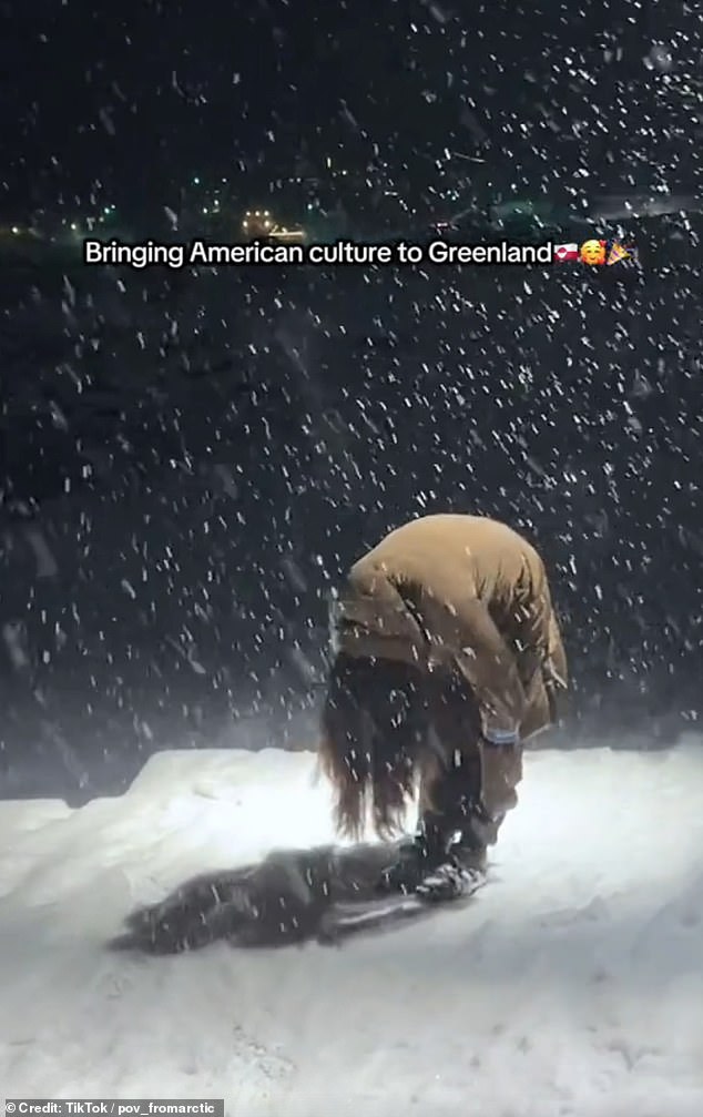 En la publicación, el usuario de TikTok compartió con sus 26.300 seguidores la leyenda: “Traer la cultura estadounidense a Groenlandia”.