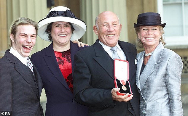 Sir Stirling Moss y su esposa Susie acompañaron a Elliott y Alison mientras recogía su título de caballero en el Palacio de Buckingham.