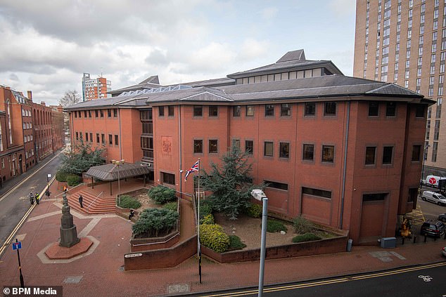 El PC Robert Davies, que pasó 21 años en la policía de Warwickshire, compareció ante el Tribunal de la Corona de Birmingham (en la foto) para negar tres cargos de robo relacionados con sus funciones.
