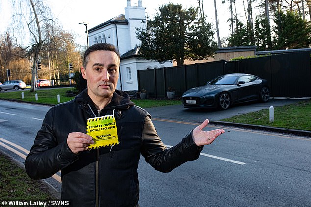 David Miller, de 49 años, estaba furioso después de encontrar una multa de estacionamiento en su Jaguar F-Type, que había estacionado en una pista de asfalto de seis metros de largo frente a las puertas de su casa en Chester, Cheshire.